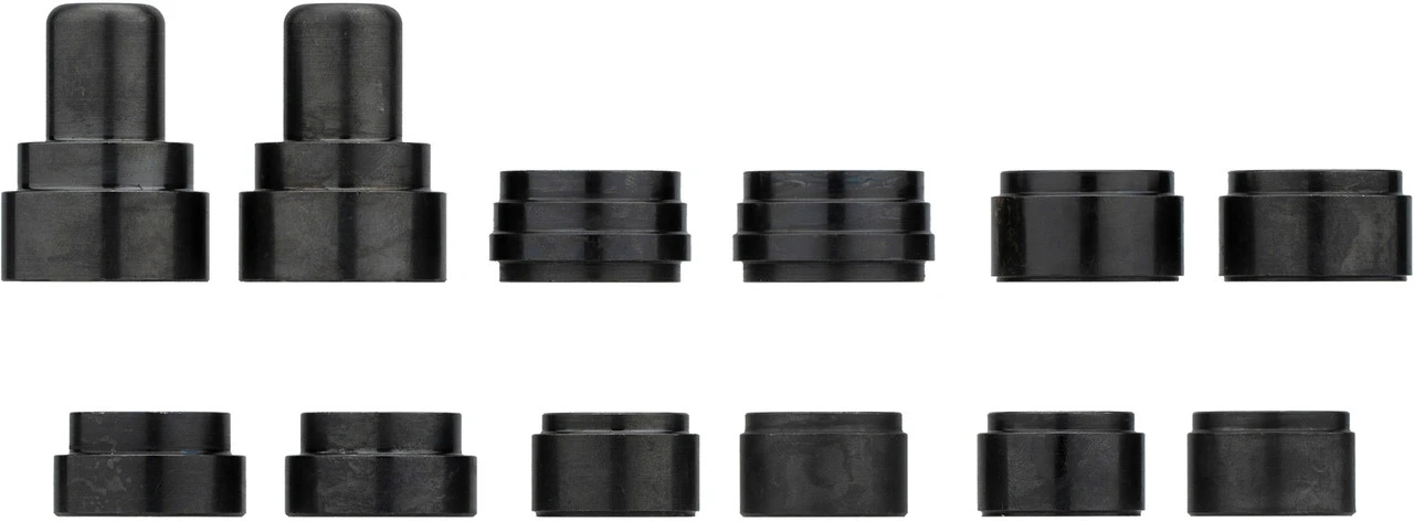 La herramienta está diseñada para presionar las cazoletas exteriores de bujes Campagnolo/Fulcrum. Durante el montaje a presión, los dos casquillos exteriores se introducen en los asientos de las cazoletas por parejas, de forma paralela, rápida, segura y, sobre todo, profesional, mediante el par de casquillos correspondientes. La herramienta de presión es compatible con bujes Campagnolo/Fulcrum. La excepción son los bujes con cuerpo de carbono, por ejemplo, Neutron Ultra, Shamal Ultra.