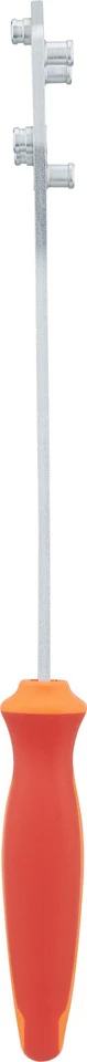 Especificaciones:Función:Desmontaje de cassettesTipo de herramienta:Herramienta especialCompatibilidad:10 D, 11 D, 12 D (piñón más pequeño)Datos técnicos:Material:AceroMaterial del mango:PlásticoCaracterísticas:sirve de contraapoyo al retirar el cassete, alternativa al latiguillo de cadenalos pasadores encajan con el piñón más pequeño y lo mantienen fijola apertura en el centro permite un fácil acceso al cassettepara cassettes con 10 a 12 dientes en el piñón más pequeñode acero al carbono Premium Flex Pluscromadacon mango ergonómico de dos componenteslongitud total 350 mmNúmero de fabricante:624931