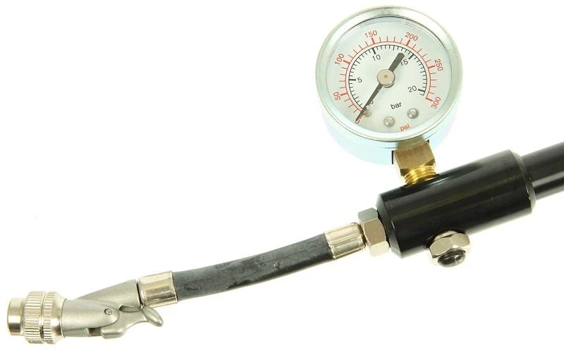 Características:válvula de conexión especial (evita la pérdida de aire al enroscar y desenroscar)con manómetro extraíblemanguera retráctil de alta presiónhasta un máximo de 21 barLa válvula de horquilla/amortiguador no se abre en cuanto se enrosca, sino sólo después de mover una palanca.Número de fabricante: 11331104